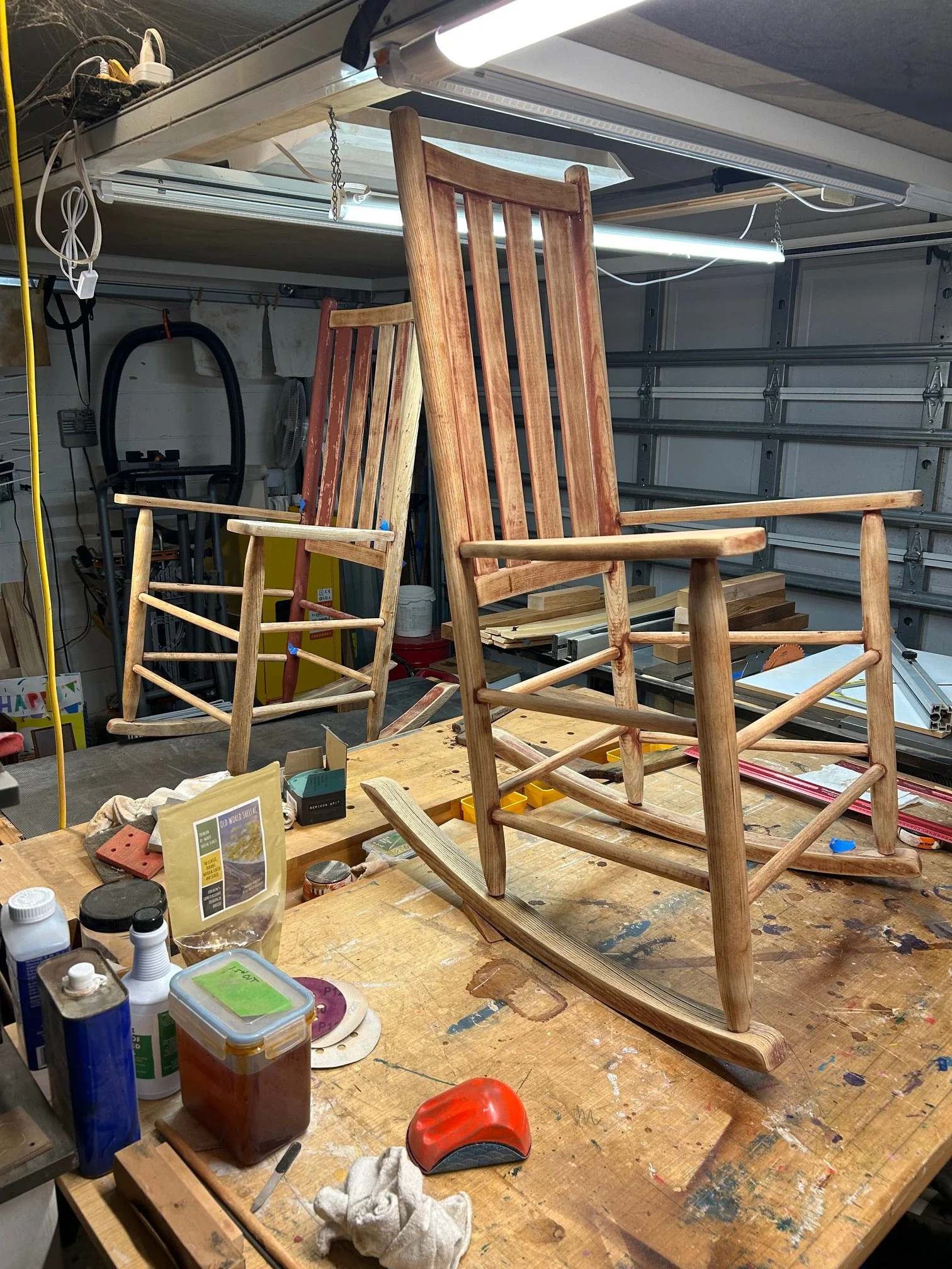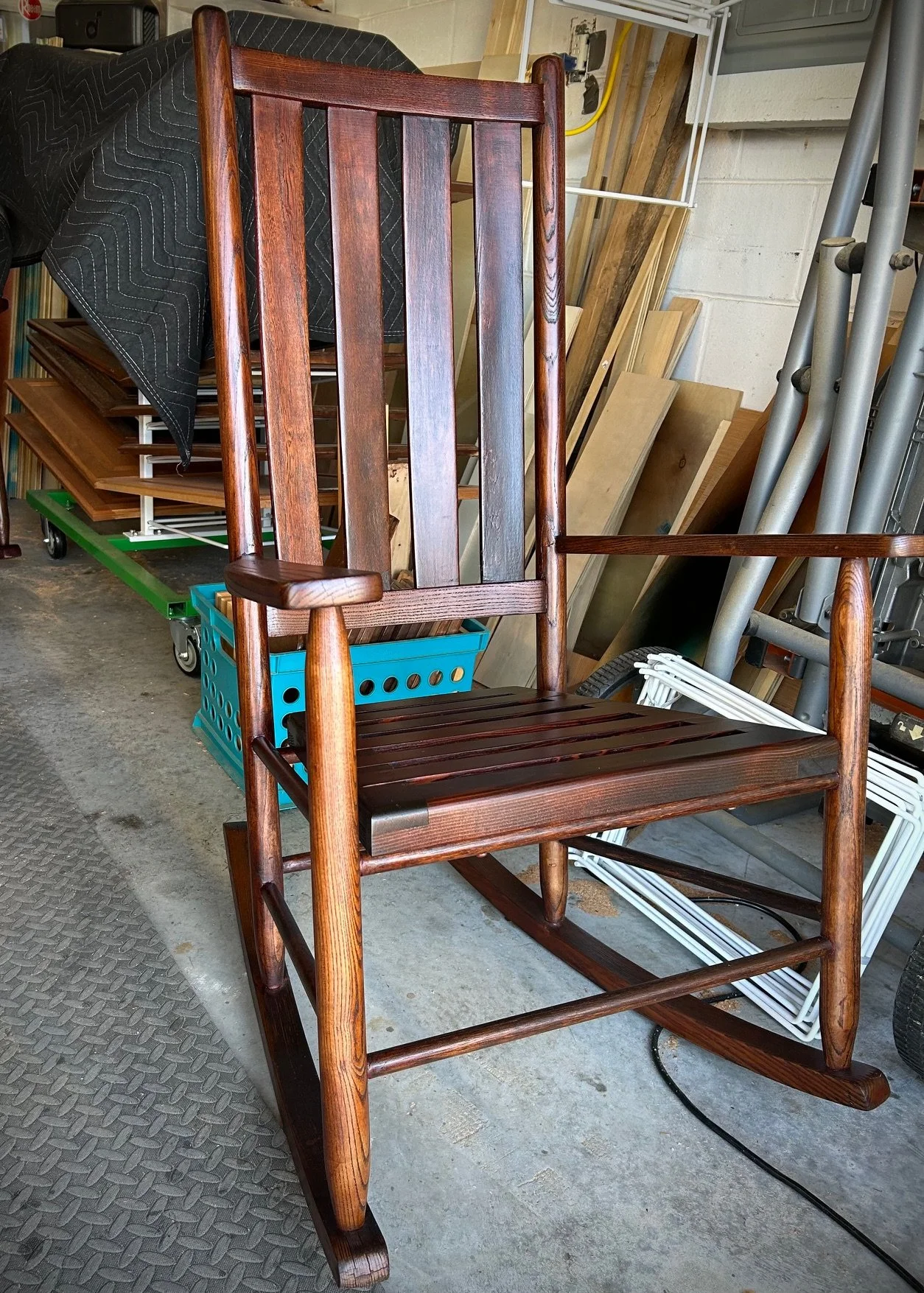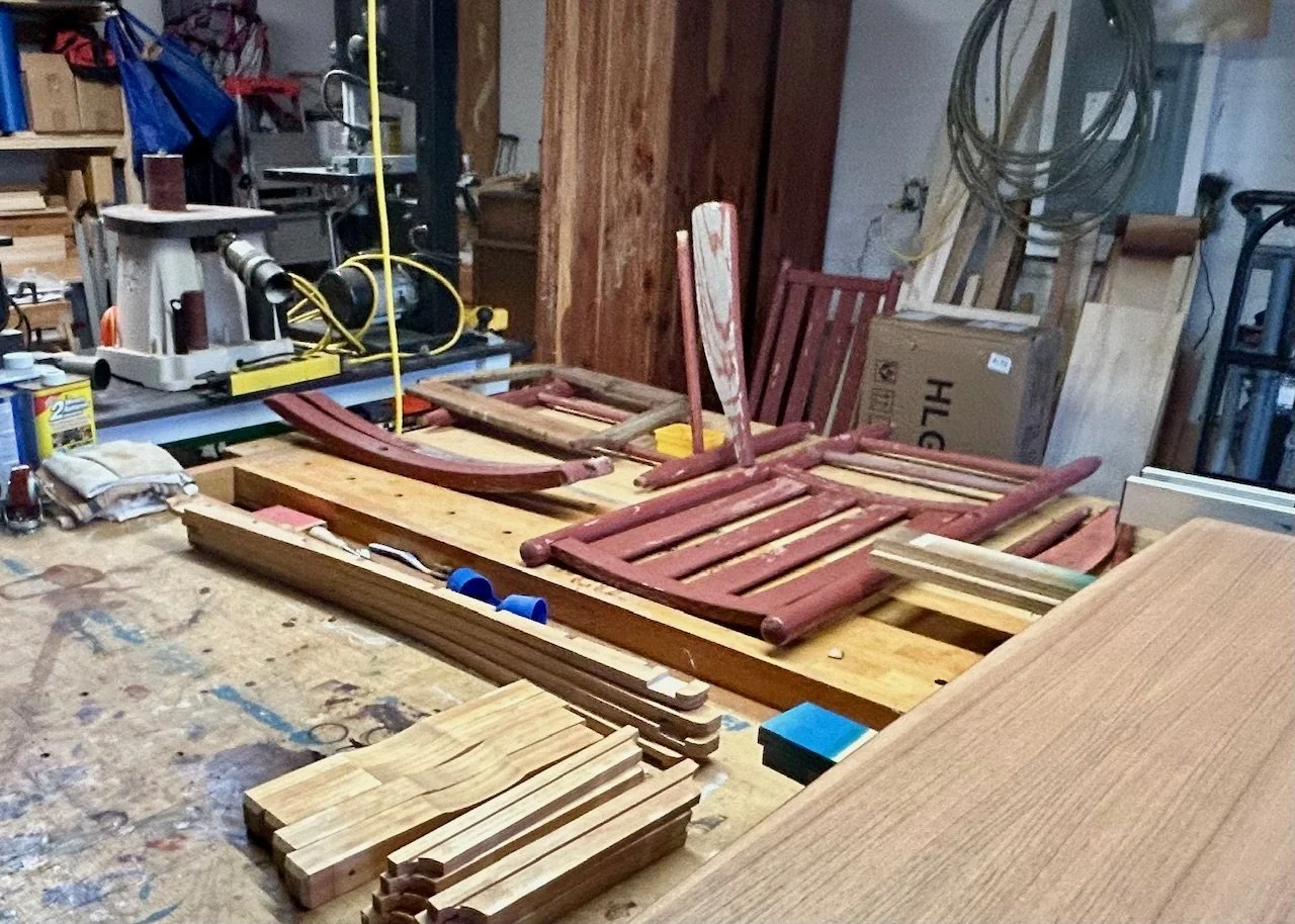Original finish needed to be stripped, sanded and re-stained. Added a durable satin topcoat